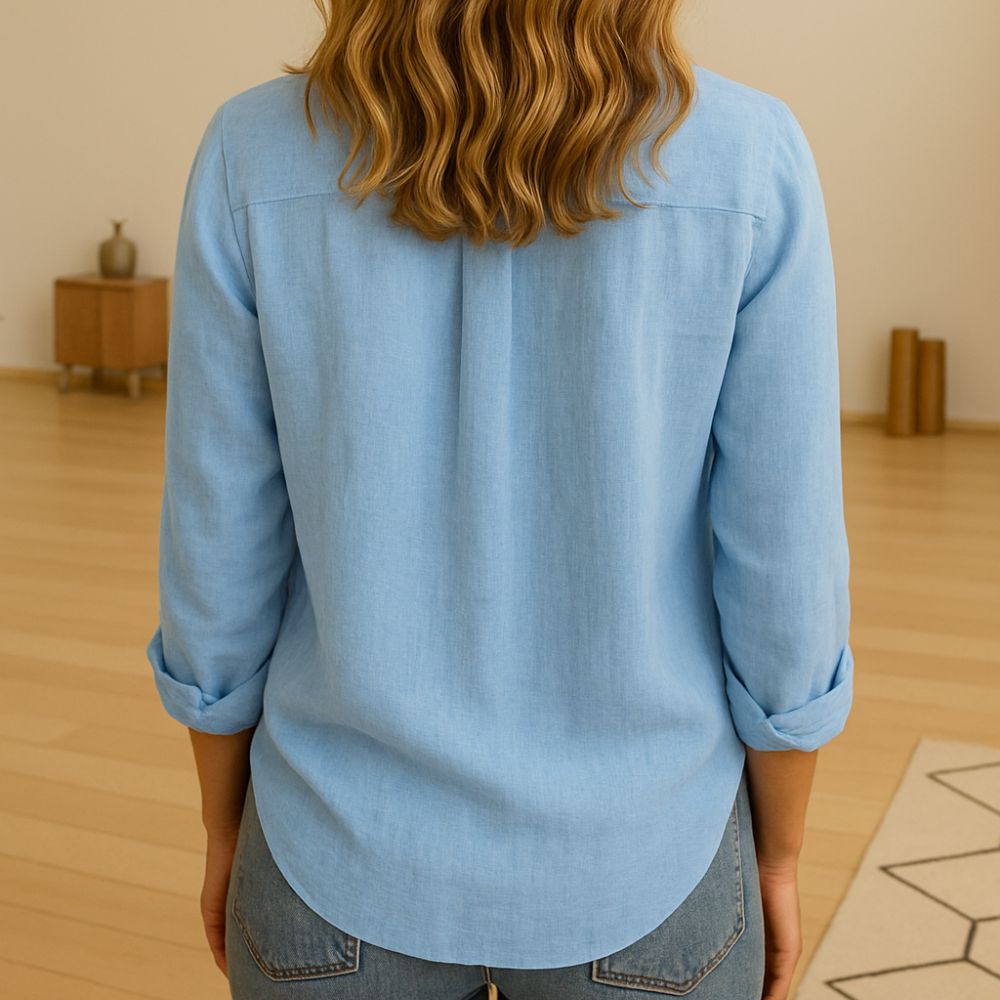 Le lin utilisé est naturellement texturé mais doux au toucher, agréable à porter toute la journée.