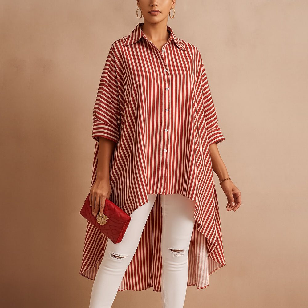 Devant : elle couvre sans engloutir. Derrière : elle descend plus bas pour allonger la jambe et camoufler les fesses. Tout en fluidité. Portée avec un jean blanc, un legging noir ou même ceinturée, elle s’adapte à votre style sans imposer le sien. Confortable, mais toujours flatteuse.