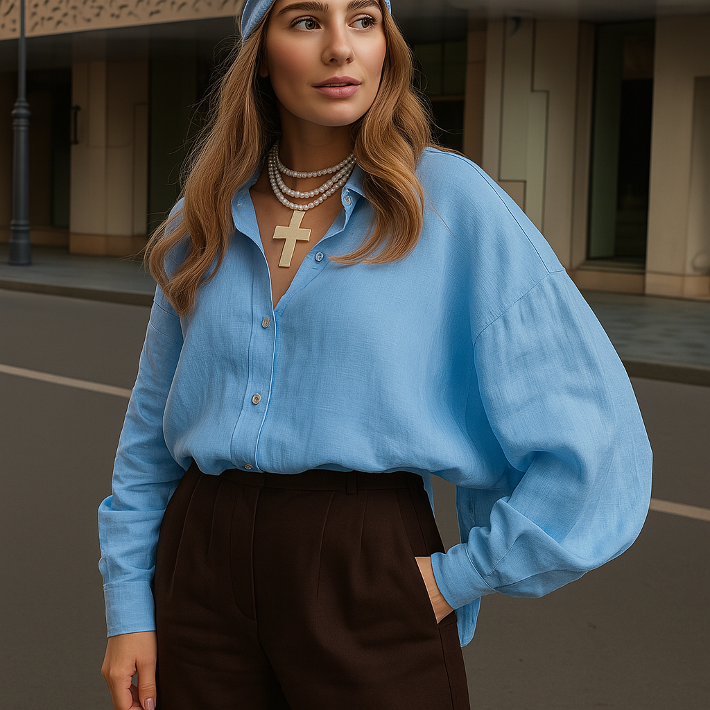 Portée rentrée dans un pantalon, fluide sur un short, ou nouée à la taille : cette chemise s’adapte à votre style du jour. Pour une journée pro, un café en ville ou un week-end en bord de mer, elle est toujours la bonne option. C’est la pièce passe-partout… sans être passe-partout.