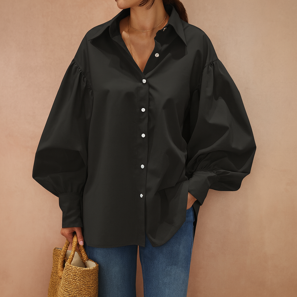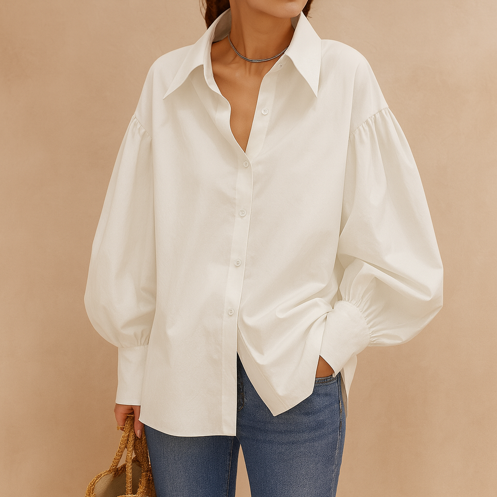 Cette chemise est pensée pour toutes celles qui veulent respirer et rayonner. Sa coupe ample floute subtilement les zones sensibles, sans effet "sac". Elle tombe bien, bouge bien, se porte aussi bien rentrée que loose. Vous vous sentez libre — et belle.